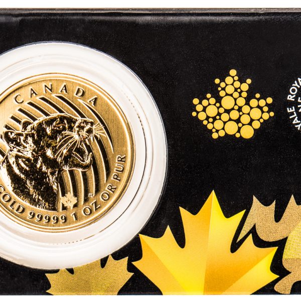 The Growling Cougar is a new 1oz 99999 (5 9’s) pure gold bullion coin. These coins feature the laser engraved security mark introduced to the Gold Maple Leaf in 2013. In addition to its unmatched purity, this legal tender bullion coin holds a denomination of $200 (CAD), the highest of any 1oz bullion coin on the market. Each coin is packaged in premium credit card packaging with an embedded capsule.